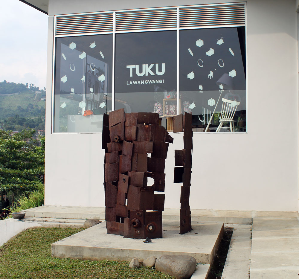 Di pojok lain karya seni ini, ada juga souvenir corner yang lucu. Mereka menjual souvenir seperti kaos, tas dan hiasan kayu namanya Tuku.